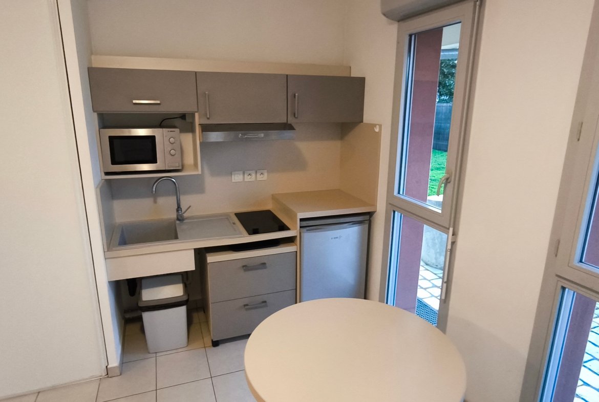 T1 BIS + PARKING A proximité immédiate de KEDGE et à 5 min des FACS, dans une résidence récente de standing ayant préservé le cachet d’une façade en pierre de taille. Logement spacieux, LOUE MEUBLE, pour une surface totale de 29m² , composé d’une pièce de vie de 22m², bénéficiant d’une vue sur jardin au calme et sans vis-à-vis, d’une cuisine aménagée et équipée, d’une grande salle d’eau avec WC. Un parking au sous-sol complète ce bien. Double vitrage, chauffage individuel électrique. Une laverie est accessible au sein de la résidence 24/24 – 7/7 (payant).